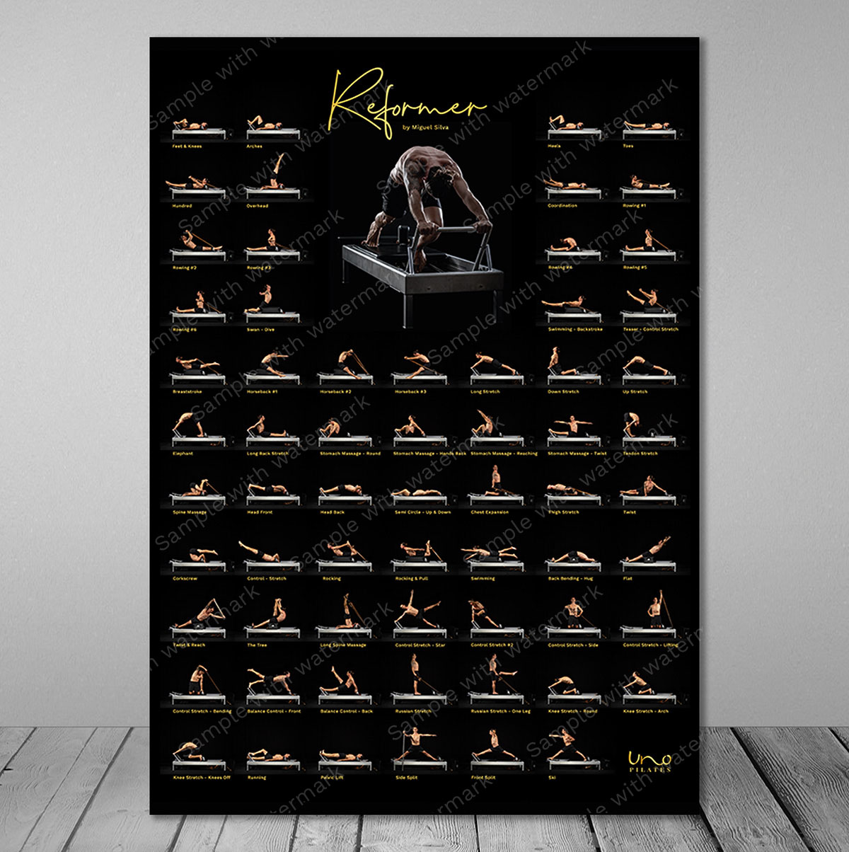This artistic poster was first published by Unopilates School® in 2023 and is now available. It features Miguel Silva conducting a series of exercises on the Reformer. The poster is great to follow along your workout.